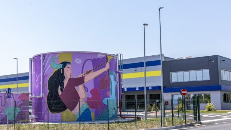 Pescara DC1 is more than just a warehouse: 730 square metres of the building are dedicated to offices and communal areas designed to enhance workers’ well-being, in line with Prologis’s Parklife philosophy. This approach involves targeted interventions to make facilities more welcoming and functional, integrating them into the surrounding social and environmental fabric. In this spirit, the fire water tank has been decorated with a piece of urban art by street artist Ginevra Giovannoni, known as Rame13, who transformed the cistern into a tribute to the Greek goddess Artemis. A symbolic message of care for the land and connection with nature, it is visible to those exiting the motorway.