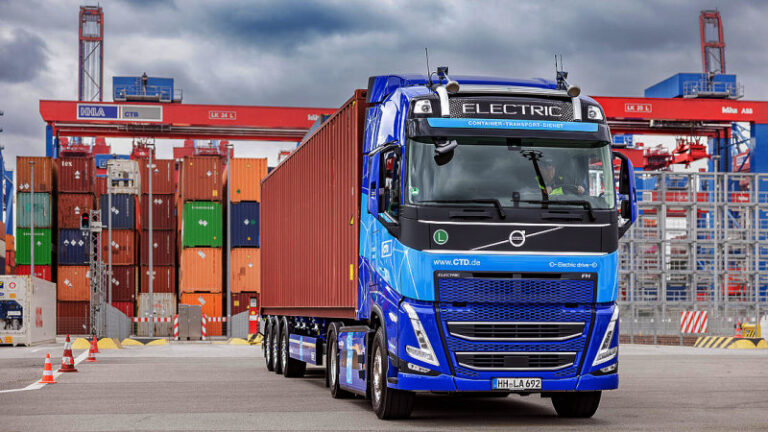 HHLA has launched several electrification initiatives in land transport. In June 2024 its subsidiary Container Transport Dienst commissioned its first two Volvo FH Electric trucks for container haulage within the port of Hamburg. The vehicles are equipped with 540 kWh batteries, charging power of up to 250 kW and a range of between 260 and 340 kilometres at full load. The trial phase is designed to gather data on day-to-day use, consumption and charging times to assess potential fleet expansion.