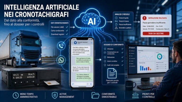 L’intelligenza artificiale entra nella gestione operativa dei dati del cronotachigrafo con un approccio centrato non tanto sulla rilevazione delle infrazioni, quanto sulla loro gestione documentale. È in questo contesto che si colloca la soluzione sviluppata dall’olandese Roadsoft, pensata per rendere automatico il ciclo completo che va dall’analisi dei file del cronotachigrafo fino alla creazione di un fascicolo di conformità pronto per eventuali controlli ispettivi. Il sistema nasce per rispondere a una criticità diffusa tra le aziende di trasporto: la difficoltà nel dimostrare in modo strutturato di aver gestito correttamente le violazioni.