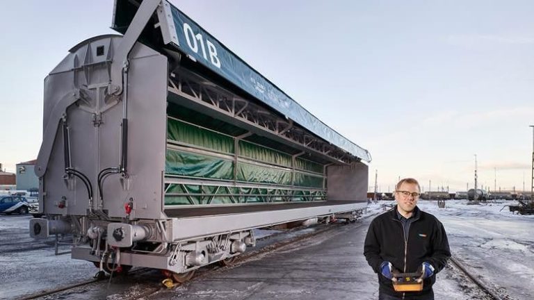 Un carro ferroviario che può essere caricato e scaricato velocemente nello stesso modo in cui si movimenta la merce in magazzino. Il segreto, se di segreto si può parlare, sta nella sua soluzione innovativa con l’apertura verticale lungo l’intero lato del vagone da 20 metri. I primi prototipi di questo carro, ne sono previsti ventidue, sono stati studiati e realizzati da Kiruna Wagon, una società svedese specializzata nella progettazione e produzione personalizzata di carri per il trasporto di prodotti minerari e di materie prime; forse anche per questo vengono testati per ora in Svezia.
