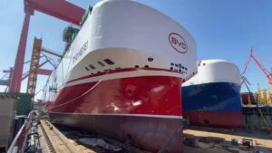 Ora il costruttore cinese ha iniziato la fase successiva, che prevede la proprietà di otto car carrier di nuova costruzione entro due anni. La prima è stata consegnata a settembre 2024 dal cantiere Guangzhou Shipyard International e battezzata Byd Heifei (città dove Byd ha una fabbrica). È una nave lunga 200 metri e larga 38 metri, con garage su più piani che possono trasportare fino a settemila veicoli a una velocità fino a 18,5 nodi. È mossa da motore ibrido che funziona con carburante tradizionale e con gas naturale liquefatto.