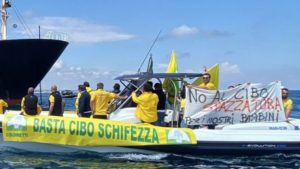 Secondo Coldiretti, “lo scorso anno l’Italia ha importato 85 milioni di chili di pomodoro trasformato cinese, proveniente in gran parte proprio dallo Xinjiang nonostante il fatto che gli Stati Uniti nel abbiano vietato l’importazione sul proprio territorio dal gennaio 2021 per evitare di sostenere il lavoro forzato”. Anche a Salerno la nave è stata avvicinata dai gommoni dell’associazione.