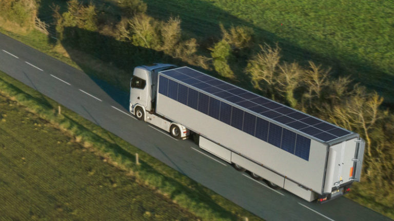 La riduzione dei consumi di carburante – e quindi delle emissioni di CO2 – nell’autotrasporto passa ormai attraverso l’insieme di tecnologie che intervengono in tutti gli aspetti del veicolo industriale. Uno di questi è la grande superficie disponibile sul tetto e sulle fiancate dei semirimorchi furgonati, che si può usare come supporto per pannelli solari. Lo hanno fatto Sono Motors e Chereau, sviluppando un impianto fotovoltaico per alimentare il frigorifero dei semirimorchi a temperatura controllata. Le due società sono riuscite a installare ben 58,9 metri quadrati di pannelli solari sul tetto e sulle fiancate del semirimorchio, che possono produrre fino a 9,8 kW di energia. Il primo esemplare, per ora sperimentale, del veicolo sarà esposto allo Iaa 2022 di Hannover.
