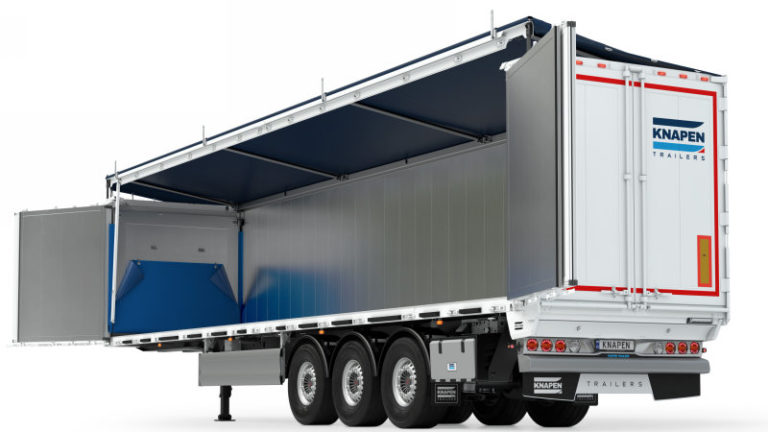 Ben quattro anni di sviluppo per un nuovo piano mobile tutto porte. Nel 2016 Knapen ha avviato un progetto speciale: un semirimorchio a doghe mobili con porte laterali, ma senza montante centrale. O meglio, il montante c’è ma nel nuovo semirimorchio Knapen Exside, importato in Italia dalla Oprandi&Partners, scorre lungo la fiancata durante il carico e lo scarico. In questo modo si crea la più ampia apertura laterale possibile, e al termine delle operazioni di carico o scarico della merce l’autista chiude le porte laterali in modo fluido e veloce.
